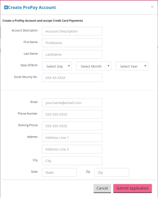 Only SuperAdmin and Admin (Business Owner) users can create a ProPay account. It is possible to have more than one ProPay account. The person legally responsible for the business should be the person entering these details.
