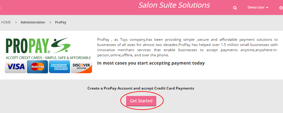 Salon Suite Solutions has arranged preferential credit card processing and ACH processing fees through ProPay, a merchant services firm. If you would like to accept credit card or ACH payments via the Salon Suite Solutions app you must submit an application for a new PropPay account.