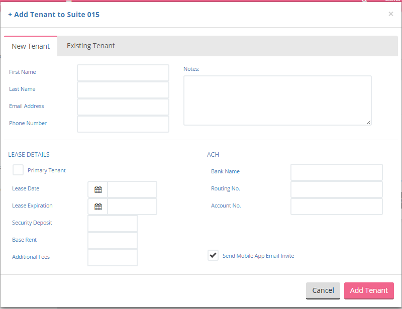 When adding a new Tenant is it possible to include their bank account information (ACH) for deducting their rent directly from their bank account.