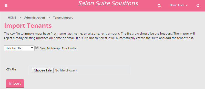- Import a list of Tenants. This option is ideal for the initial setup of a Location.